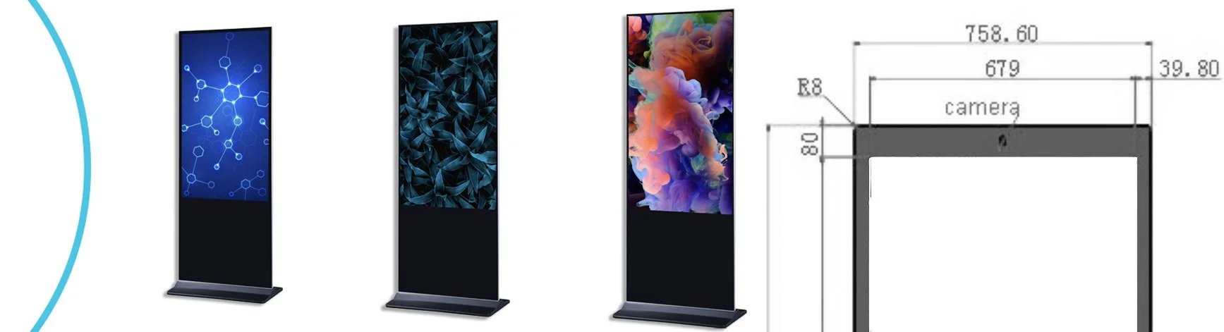 The Fionexx range of floor-standing totems is extensive. Whilst we offer a range of off-the-shelf designs, clients often work with us to produce their specific designs. Available as a single-sided or double-sided solution, they are available in the following sizes. 43", 49", 55", 65", 75" and 86".