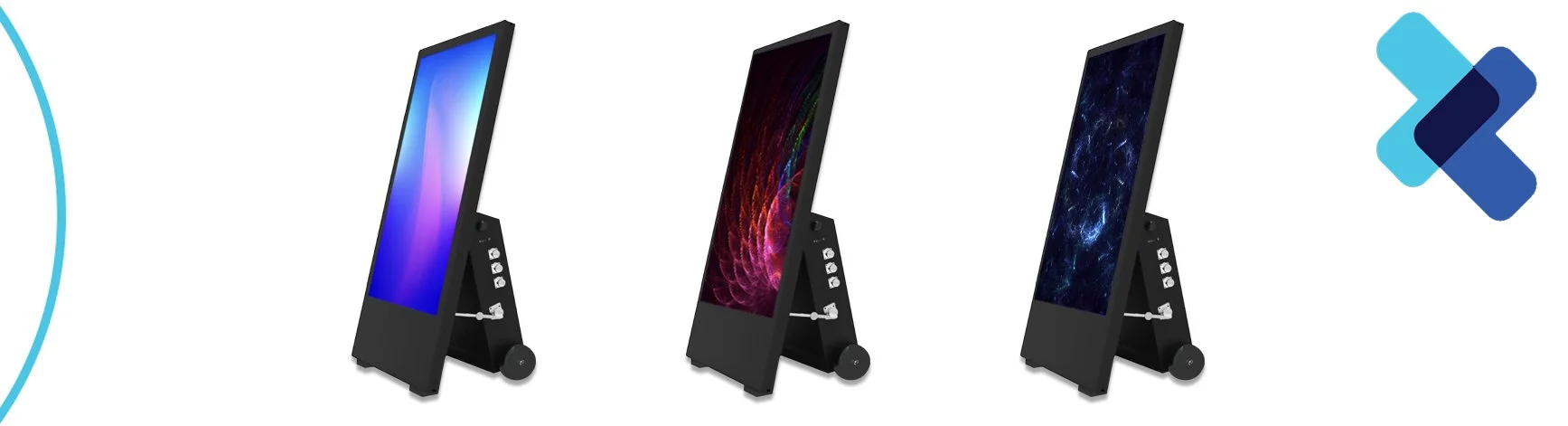 The Fionexx battery powered outdoor A-Frame poster display enables power free communications. When you need to move your A-Frame Display outdoors the Fionexx battery powered A-Frame provides you with the flexibilty you need. Key features include 2000 Nits brightness, a wide viewing angle IP65 ingress protection and 15hrs battery life.